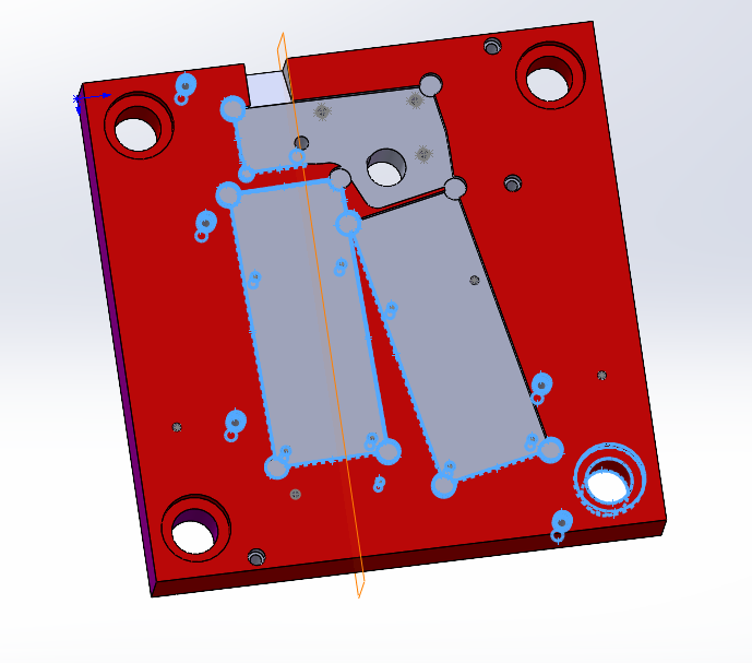 - Đế khuôn (Base Plate) chịu tải nặng: Tấm đế màu đỏ được gia công dày bản với các rãnh thoát phôi rộng, giúp máy vận hành liên tục mà không lo kẹt phôi, giảm thời gian dừng máy (downtime).